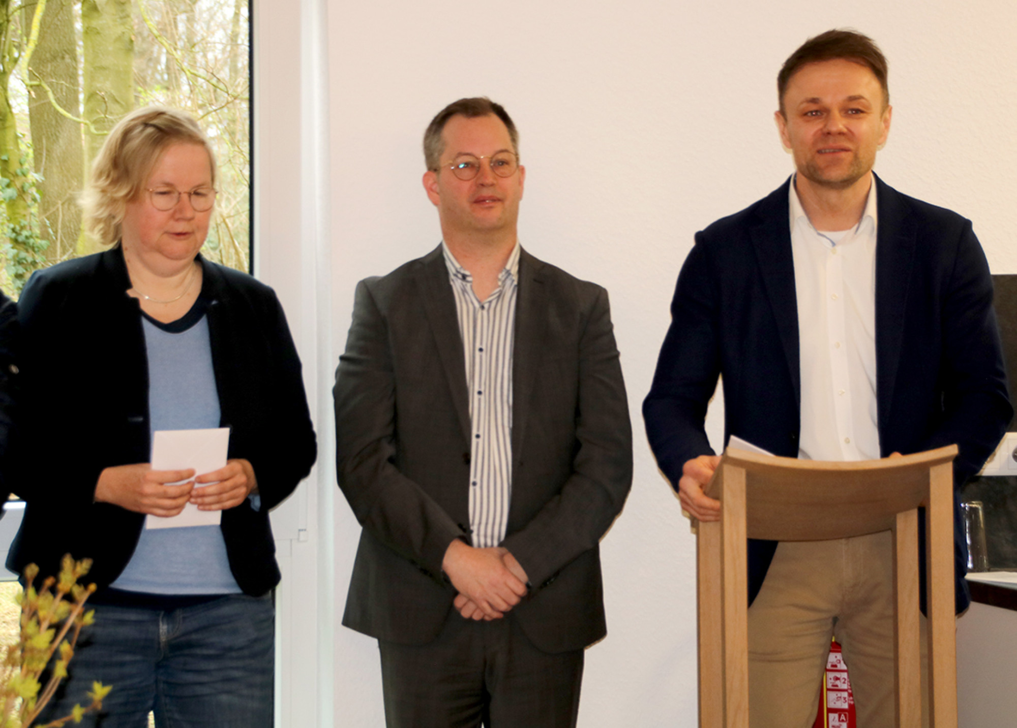 Diakonie-Geschäftsführerin Christa Stüve moderierte die Eröffnung, dankte allen Beteiligten und bezeichnete Haltern als einen „tollen Ort für dieses Projekt der inklusiven Kinder- und Jugendhilfe.“ Geschäftsfeldleiter David Cziudaj sprach von einem Haus, „das Schutz, Geborgenheit und Orientierung gibt.“ Für Heinrich Thesing „ein wahr gewordener Traum“. Zahlreiche Redner*innen schlossen sich an, unter ihnen Johannes Burrichter, Leiter der Bauabteilung. Er und Architekt Sven Eschenröder haben beim Bau nicht nur energetische und statische Aspekte berücksichtigt, sondern auch pädagogische: „Alle Zimmer sind gleich groß und sehen im Moment (beim Einzug,K.J.) gleich aus. So gibt es keinen Streit um das schönste Zimmer.“